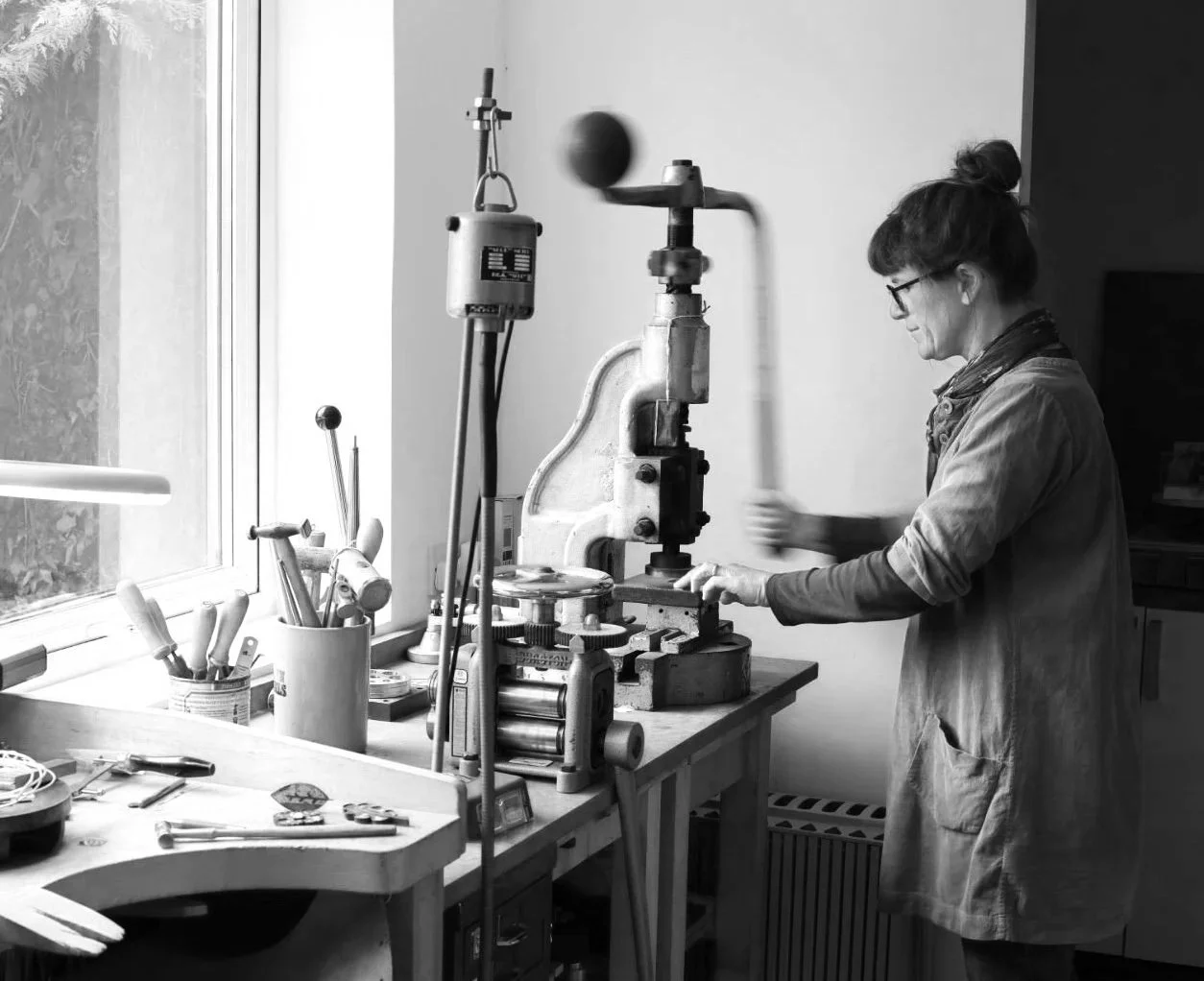 Lindsey’s playful work is a cross-pollination of printmaking and metalsmithing, bringing stylised botanical forms to life as jewellery and objects. Working from her studio in Wiltshire, Lindsey makes one-off and limited-edition pieces to wear or display.